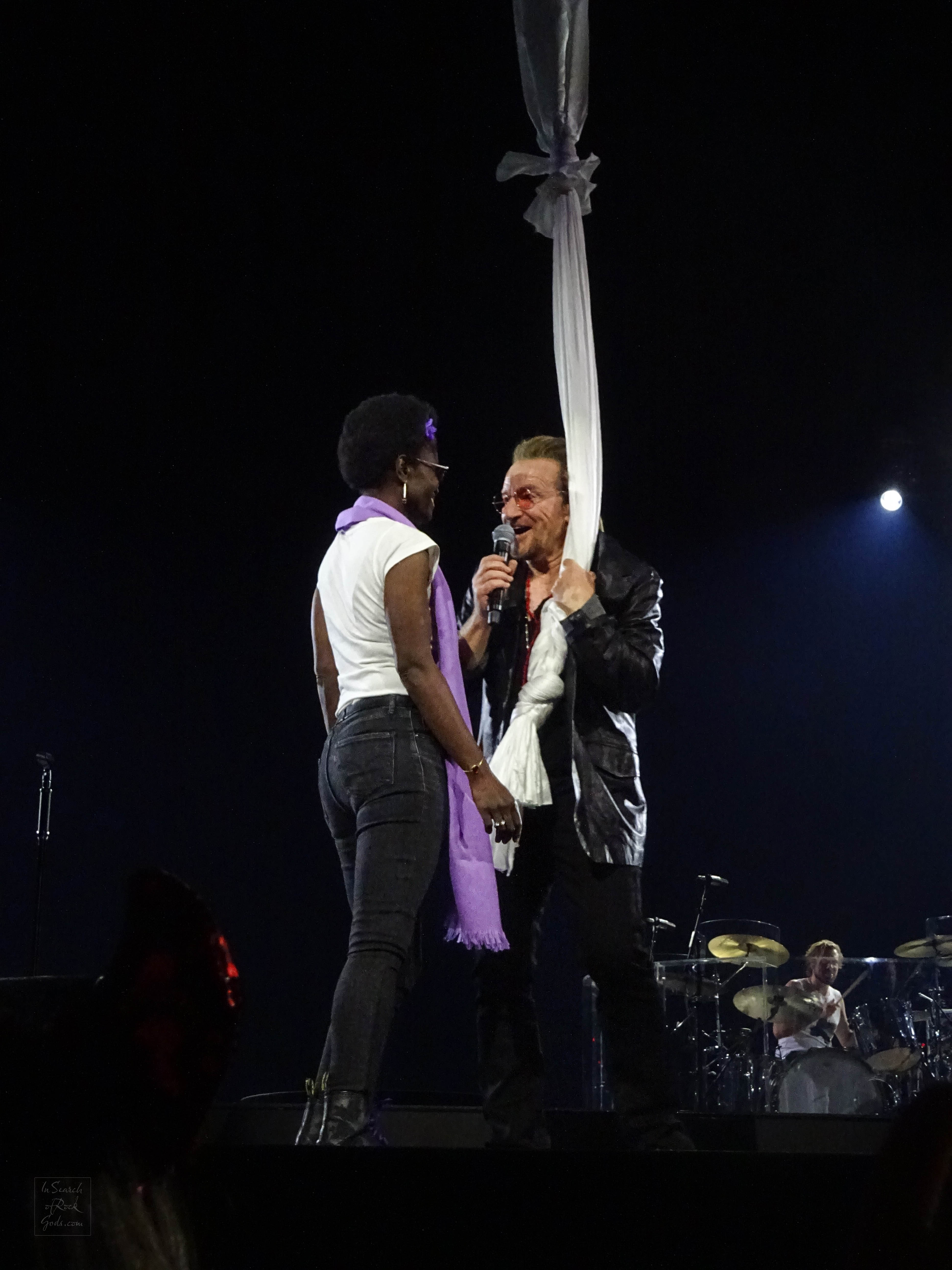 With or Without You and Beautiful Day with that crazy, incredible, gasp-inducing swallowing of the audience in imagery. That fits.
