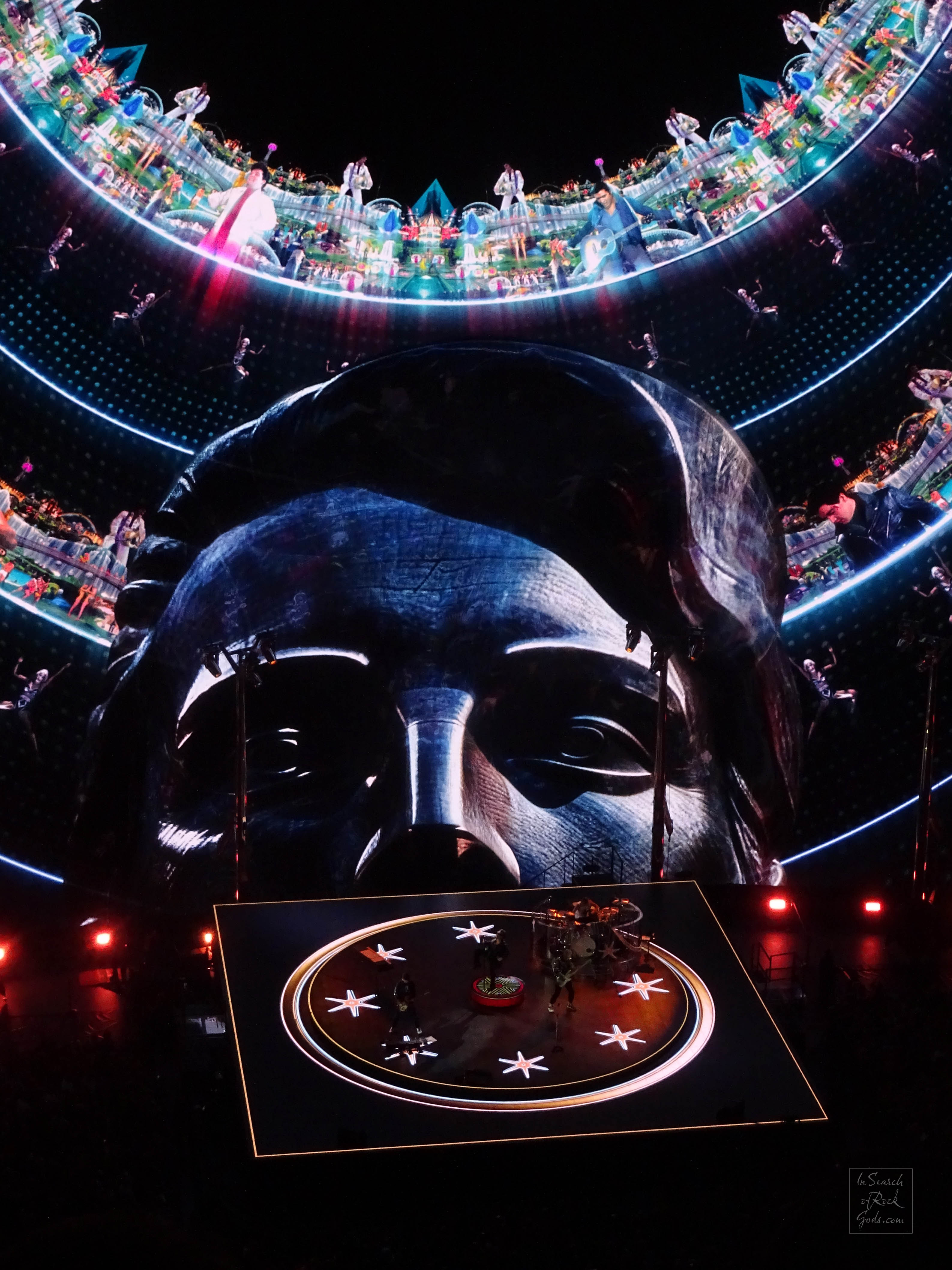 I’ve written before about the desire, the need, to see multiple U2 shows in a tour, and a large part of that is the spectacle of their show – the screens and their imagery, the characters the band portray – like Bono’s the Fly, MacPhisto, the costumes, the lighting, the stories they tell through all these elements.